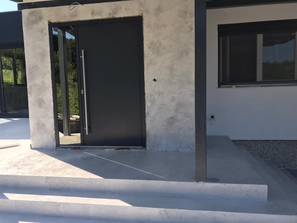 Mikrocement je na voljo v različnih teksturah in barvah, ustvarja gladek, eleganten videz brez stikov, in je popolnoma odporen na vlago in obrabo – idealen za sodobna domovanja in poslovne prostore.